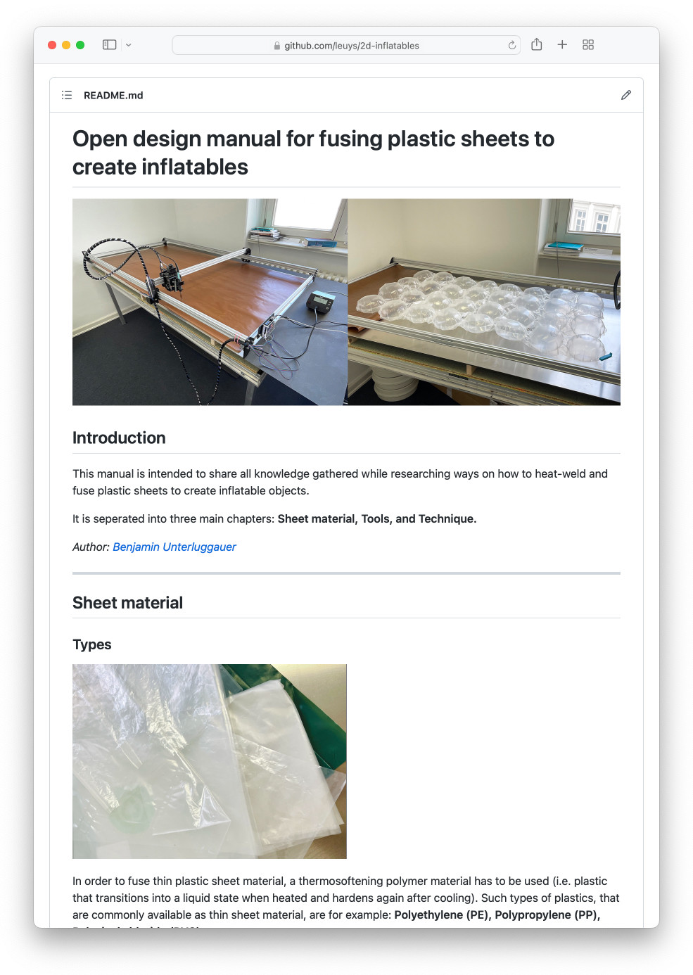 , 2021Research into the topic of inflatables, to assemble a comprehensive open-design manual exploring ways how to rapidly prototype inflatable objects by fusing plastic sheets.